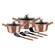 Culoare interior: Negru granit cu puncte albe Culoare exterior: Rose Gold (Cupru) metalic mat Culoare manere: Rose Gold (Cupru) cu insertii de otel inoxidabil Culoare manere tigai: Rose Gold (Cupru) cu insertii de otel inoxidabil Baza este conceputa inteligent si functioneaza pe toate sursele de caldura, aragaz, plita electrica si plita cu inductie